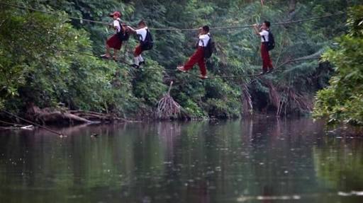 Pernah juga nih, aku liat di tv perjuangan anak-anak untuk sekolah harus melewati tebing yang