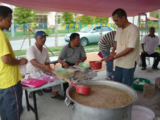 Tradisi memasak bersama berlangsung tiap tahun, biasanya para Ummi ataupun emak-emak ngumpul di pagi hari, sambil menyiapakan bahan bahan yang ada memotong berabgai macam sayur mayur seperti kacang panjang, wortel, tempe, bawang merah hingga bawang putih, sedangkan para bapak menyiapkan kawah, dan api untuk memasak bubur nya, sekaligus juga para bapak mengulit daging ayam untuk di tabur di atas buburnya nanti.