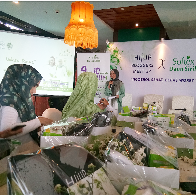 Oh ya, awalnya teman aku pernah recomended untuk mencoba Softex Daun Sirih, katanya enak banget, gak bau, menyerap, dan bisa di cuci. Selain itu juga Softex daun sirih ini sudah mendapatkan sertificat HALAL begitulah penjelasan panjang lebar nya. Iyaa aku sempat ragu untuk mencoba Softex Daun Sirih ini. Tetapi, setelah aku mengikuti acara “HIJUP BLOGGERS MEET UP X SOFTEX DAUN SIRIH” dengan penjelasan dari mbak anastasia, aku gak ragu lagi loh, untuk memakai Softex Daun Sirih