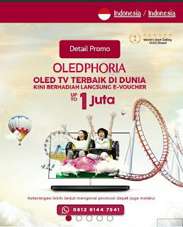 JIka kalian semua tertarik membeli dengan spesifikasi dari TV OLED dari LG. Mungkin sekarang saat yang tepat dan waktu gang pas. Karena LG sedang mengadaman promo OLED Phoria loh guts, Jadi hadiah langsung yang bisa kita dapatkan berupa e- voucher hingga Rp 1 Juta. Hadiah bisa langsung di dapatkan untuk kalian yang membeli semua TV OLED LG selama masa promo berjalan yaitu dari 30 Juli 2019 – 31 Agustus 2019. Yuuuuk gaes buat kalian yang ingin memiliki TV OLED ini segera beli ya mumpung promo nya lagi besar besaran ? bisa klik DISINI